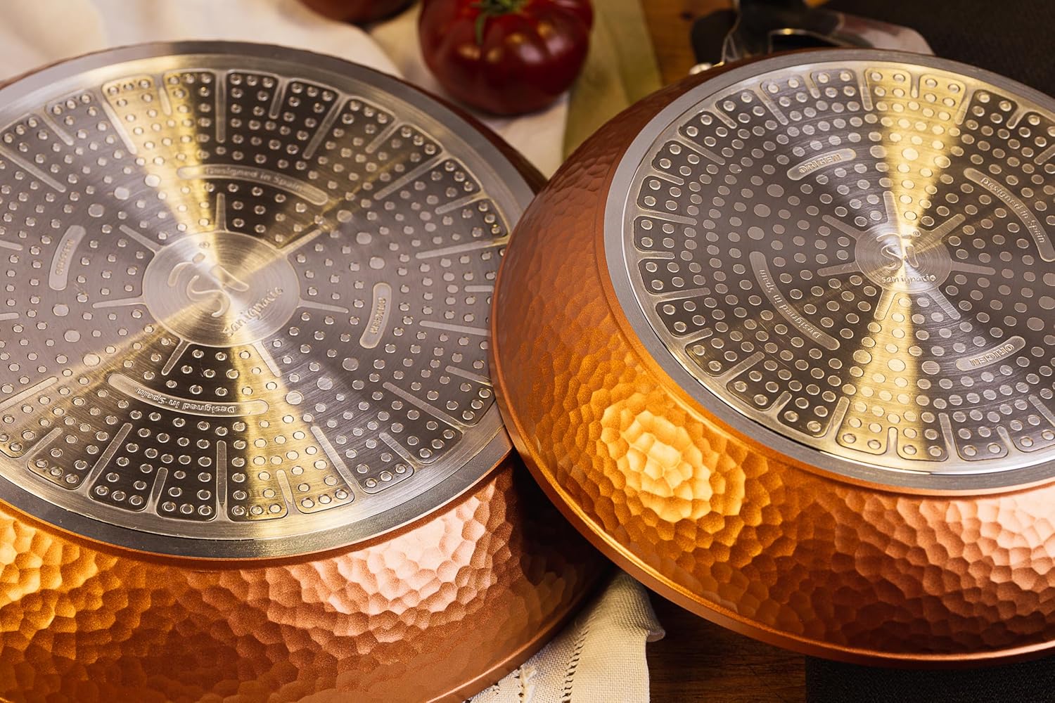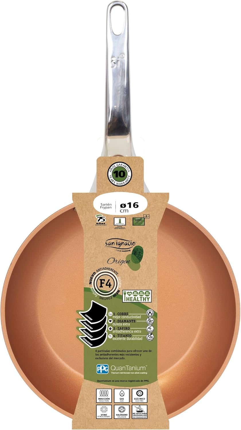 La colección Origen de San Ignacio destaca por su variedad de materiales de alta calidad, incluyendo aluminio forjado, aluminio fundido y acero al carbono. Cada material ofrece propiedades únicas, desde una distribución homogénea del calor hasta una resistencia excepcional a altas temperaturas. Además, la colección cuenta con un exclusivo revestimiento antiadherente F4 QuanTanium de Whitford, que garantiza una cocina sana y fácil de limpiar.